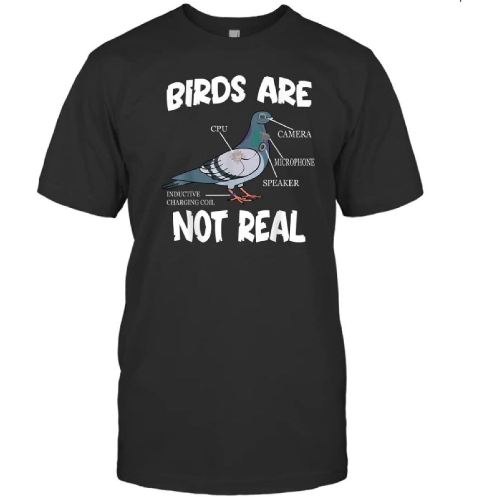 Birds are Not Real Funny Bird Spies Conspiracy Theory Birds Unisex Shirt Gift Women Men T-Shirt (Black;L)