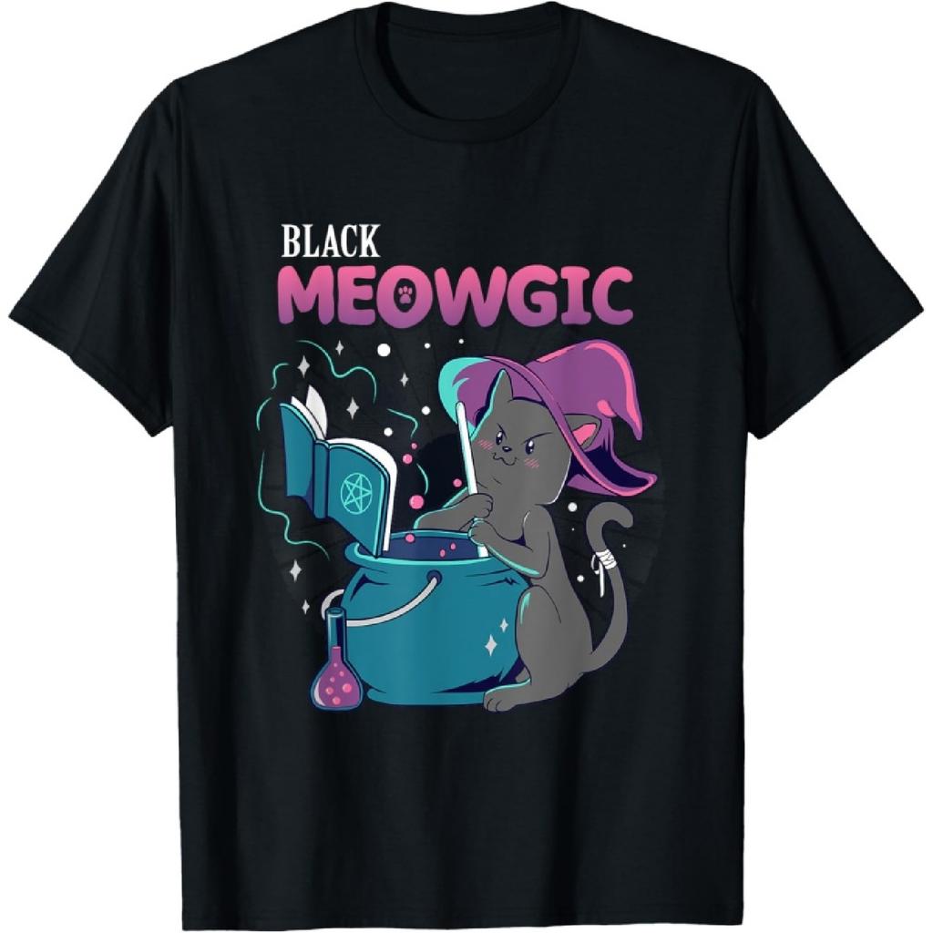 Black Meowgic funny Neko Wizard anime kitty T-Shirt