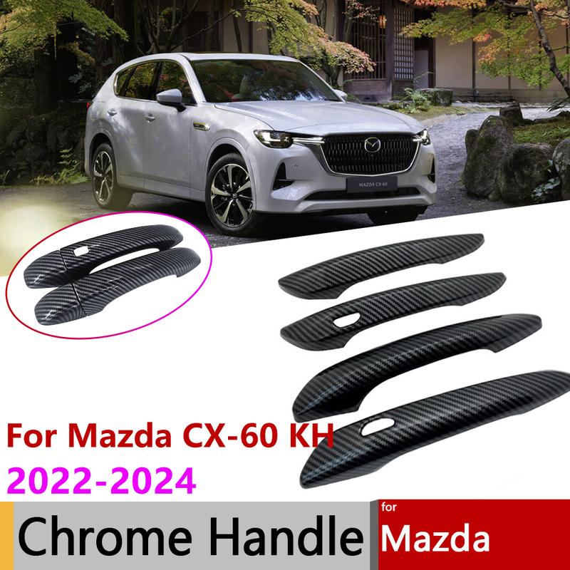 For Mazda CX-60 CX60 CX 60 KH ~2024 Car Smart Door Handle Cover Trim Set Gloss Black Carbon Fiber Chrome Exterior Accessorie