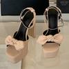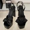 Summer Sexy Pleated Bow Design Women Sandal Super-high Heel Ankle Strap Buckle Plus Size Slide Sandal Fashion Banquet High Heels