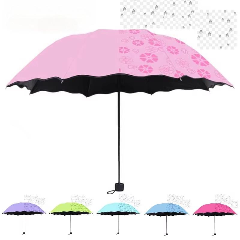 Portable Creative Water Flowering Umbrella Manual Black Coating UV Protection Sun Rain Dual Use Folding Parasol