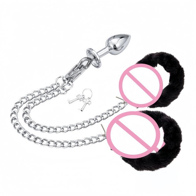 SM Lanț Metalic Erotic Cătușe & Dop Anal pentru Bărbați și Femei - Jucărie pentru Restricționare & Antrenament Anal