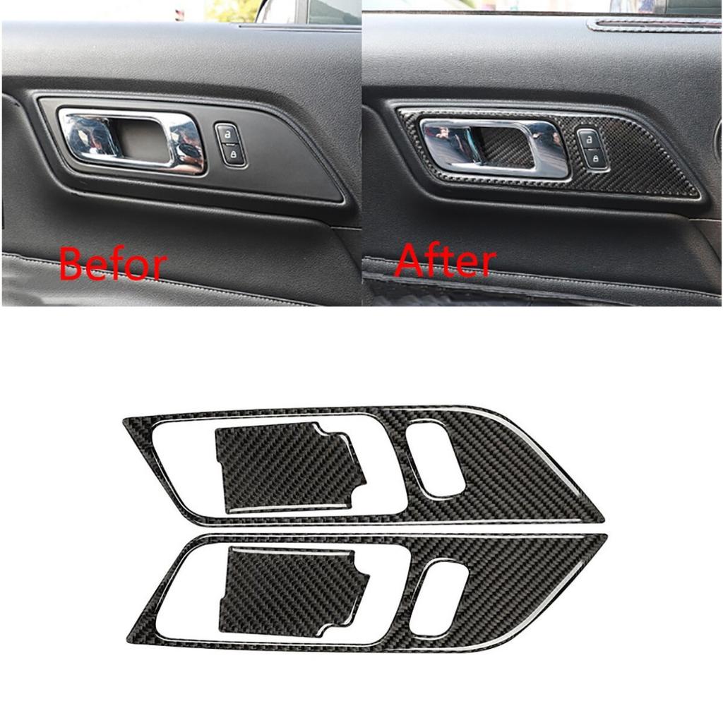 1Set Carbon Fiber Look Interior Door Handle Cover Trim For Ford Mustang 2015-21