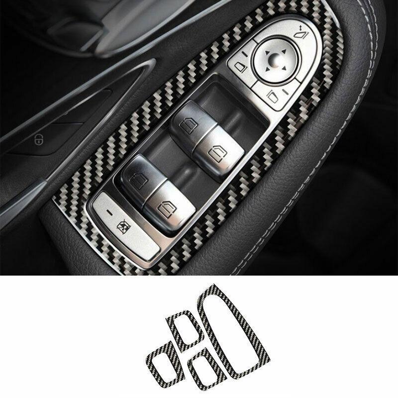 Real Carbon Fiber Window Lock Lift Panel Trim Frame For Benz C-Class 2015-