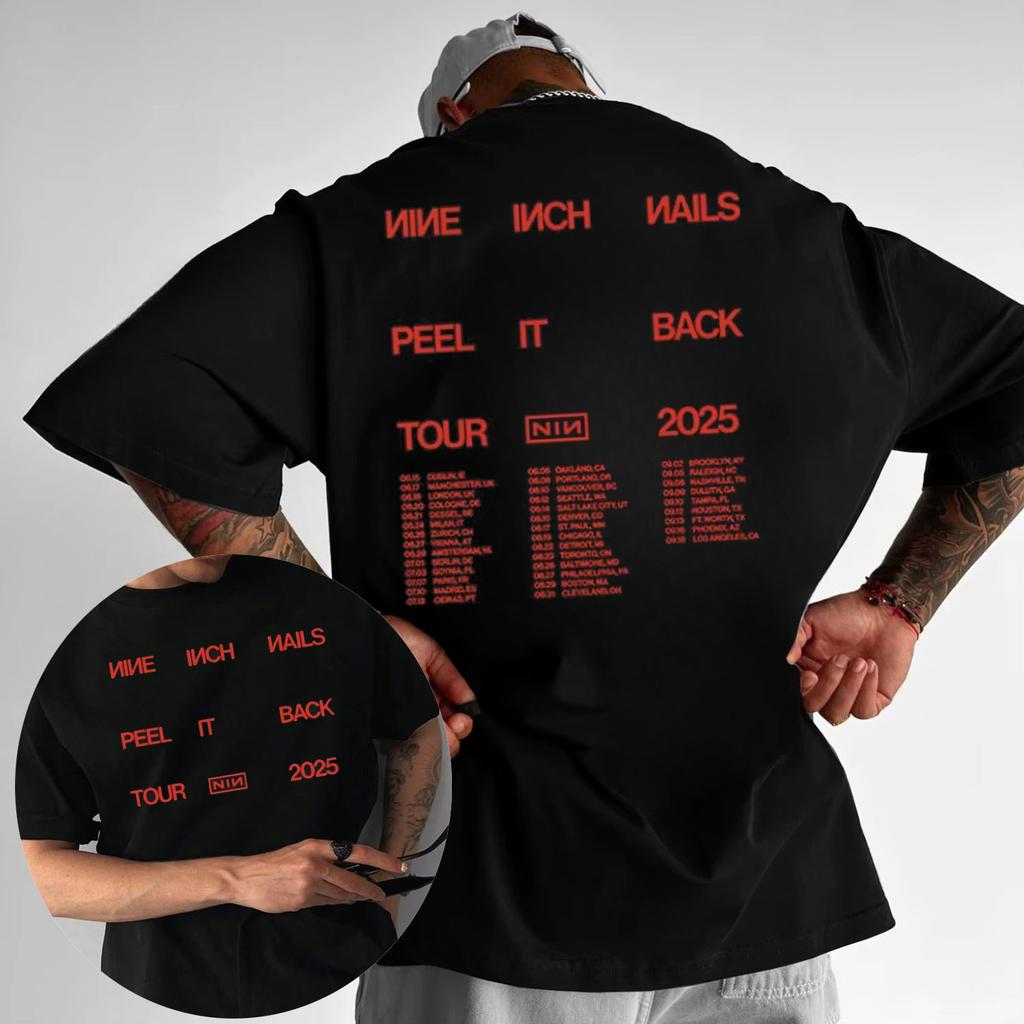 2025 Summer Nine Inch Nails Stripped Back Tshirt Mens Cotton Shortsleeved Tshirt Hiphop Street Casual Tshirt
