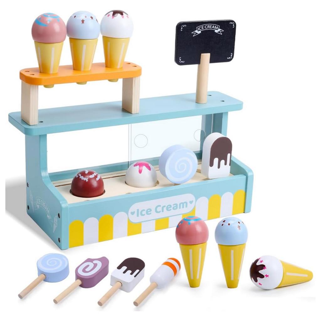 TRESTREE Pretend Play Food Ice Cream Ice Cream Pretend Play Wooden Pretend Play Kitchen Toy, Toy, Set, (Ice Cream)