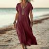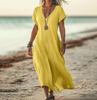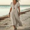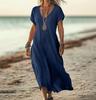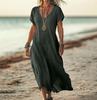 V-Neck Loose Solid Color Cotton Linen Women's Dress