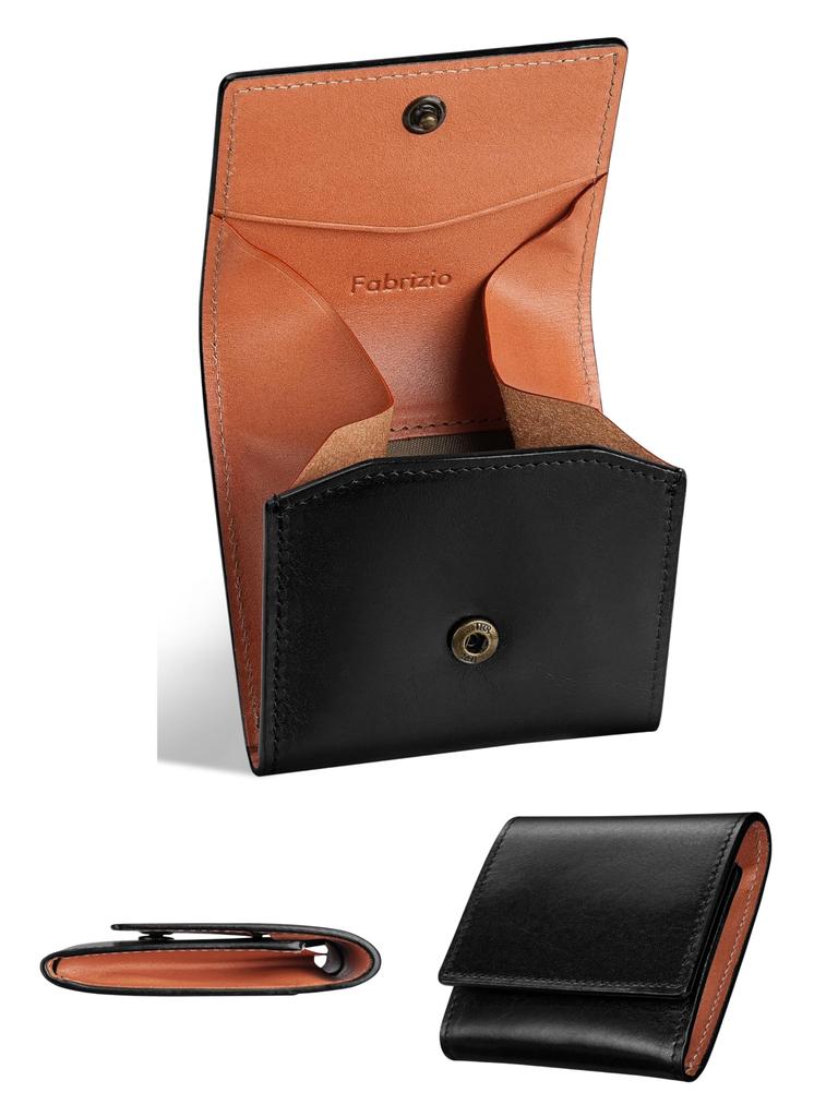 Fabrizio Coin Made of Genuine Italian Premium and Easy to Use Coin Case Men's Case, Leather, Quality, Compact, Slim, (Black)