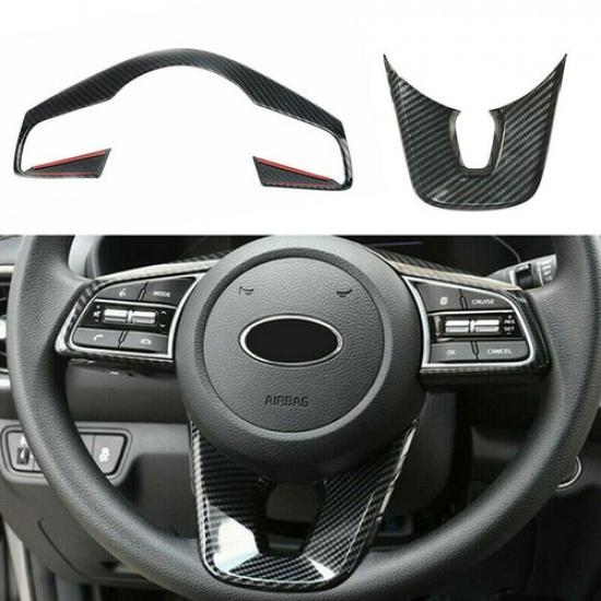 Carbon Fiber 2X Car Steering Wheel Decor Cover Trim For Kia Forte K3 2019-2024