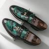Men's Business Formal Slip-On Loafers Pointed Toe Patent Leather Shoes with Shiny Tassel & Snake Print, Suitable Office Party
