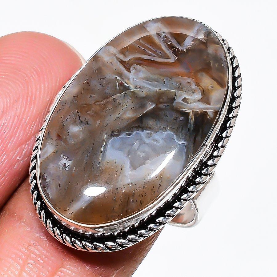 Natural Tube Agate Gemstone 925 Sterling Silver Jewelry Ring Size 9 T0T91