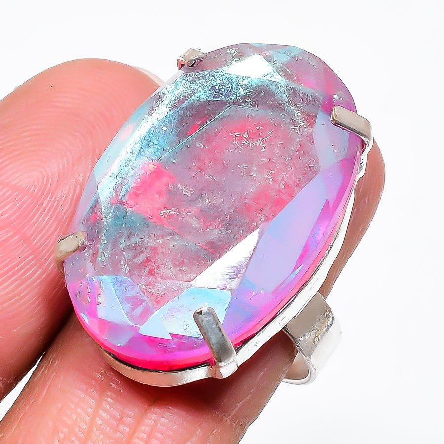 Natural Mystic Glass Gemstone 925 Sterling Silver Jewelry Ring Size 9 Z6n65