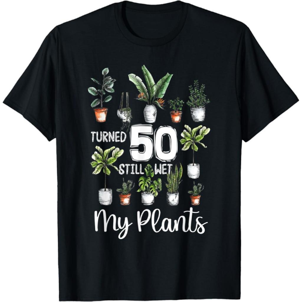 Funny 50th Birthday Still Wet My Plants Gardening T-Shirt(1)