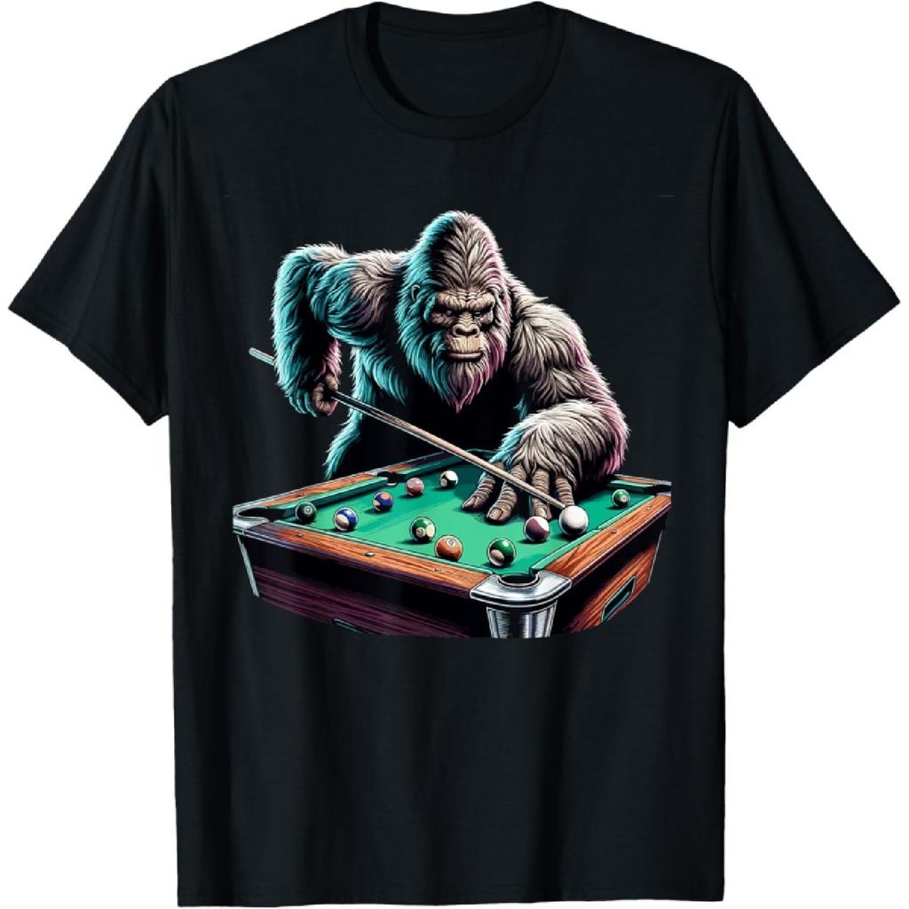 Funny Bigfoot Sasquatch Billiards Pool Player Men Boys T-Shirt(1)