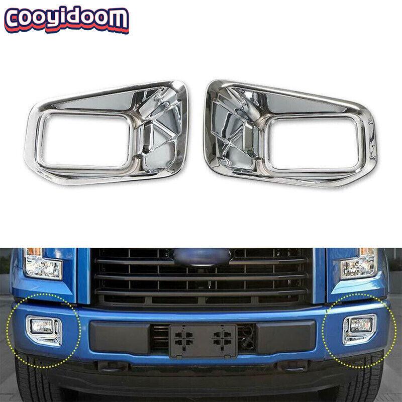 For Ford F-150 2015-2018 Auto Front Fog Light Lamp Decoration Cover Trim Chrome