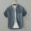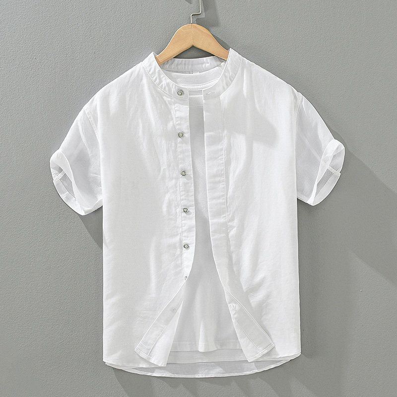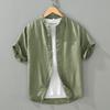 Japanese-Style Casual Stand-Collar Cotton-Linen Short-Sleeve Shirt for Men, Summer Thin Linen Shirt, Large Size
