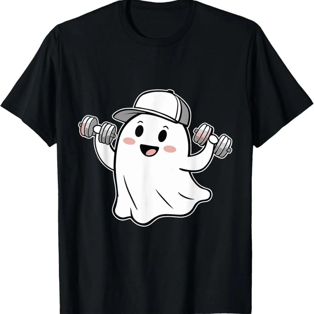 Funny Ghost Dumbbells Spooky Gym Weightlifting Halloween T-Shirt
