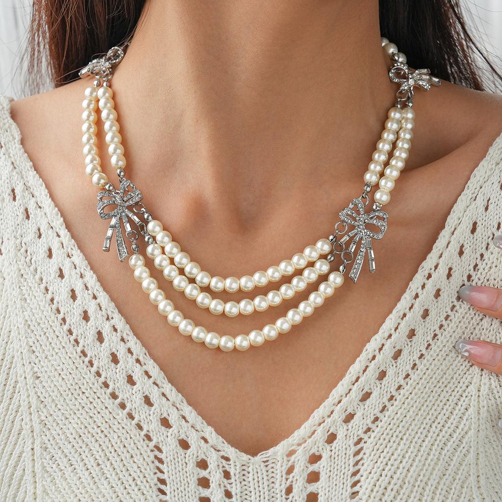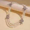 Diamond imitation pearl beaded bow multi-layer necklace baroque elegance necklace