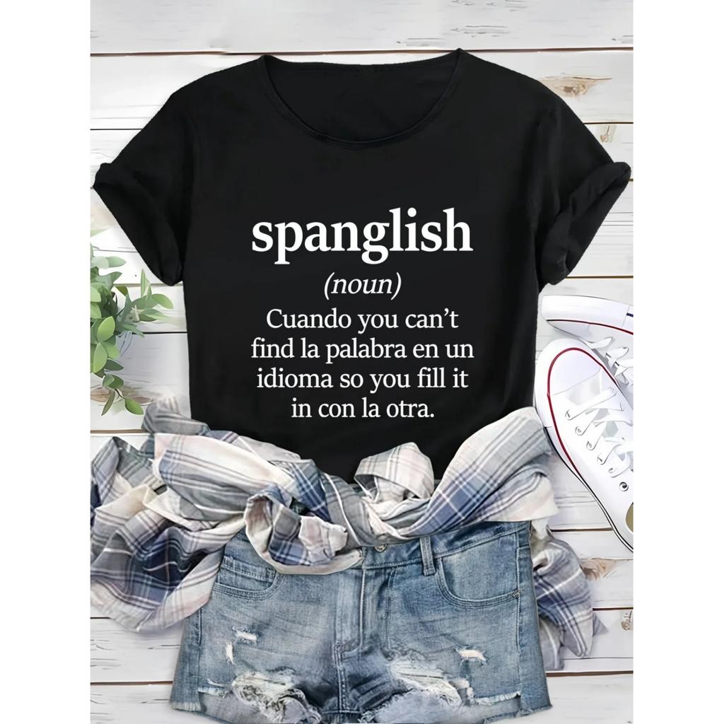 Chic Spanglish GraphicTee forWomen Relaxed Fit Lightweight SummerTop withTrendyRound NeckComfortableBreathable