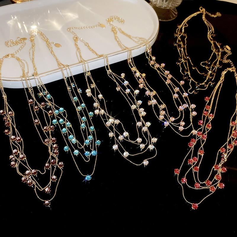Wind Gypsy Star Round Zircon Multi-layer Stacked Necklace Niche Clavicle Necklace
