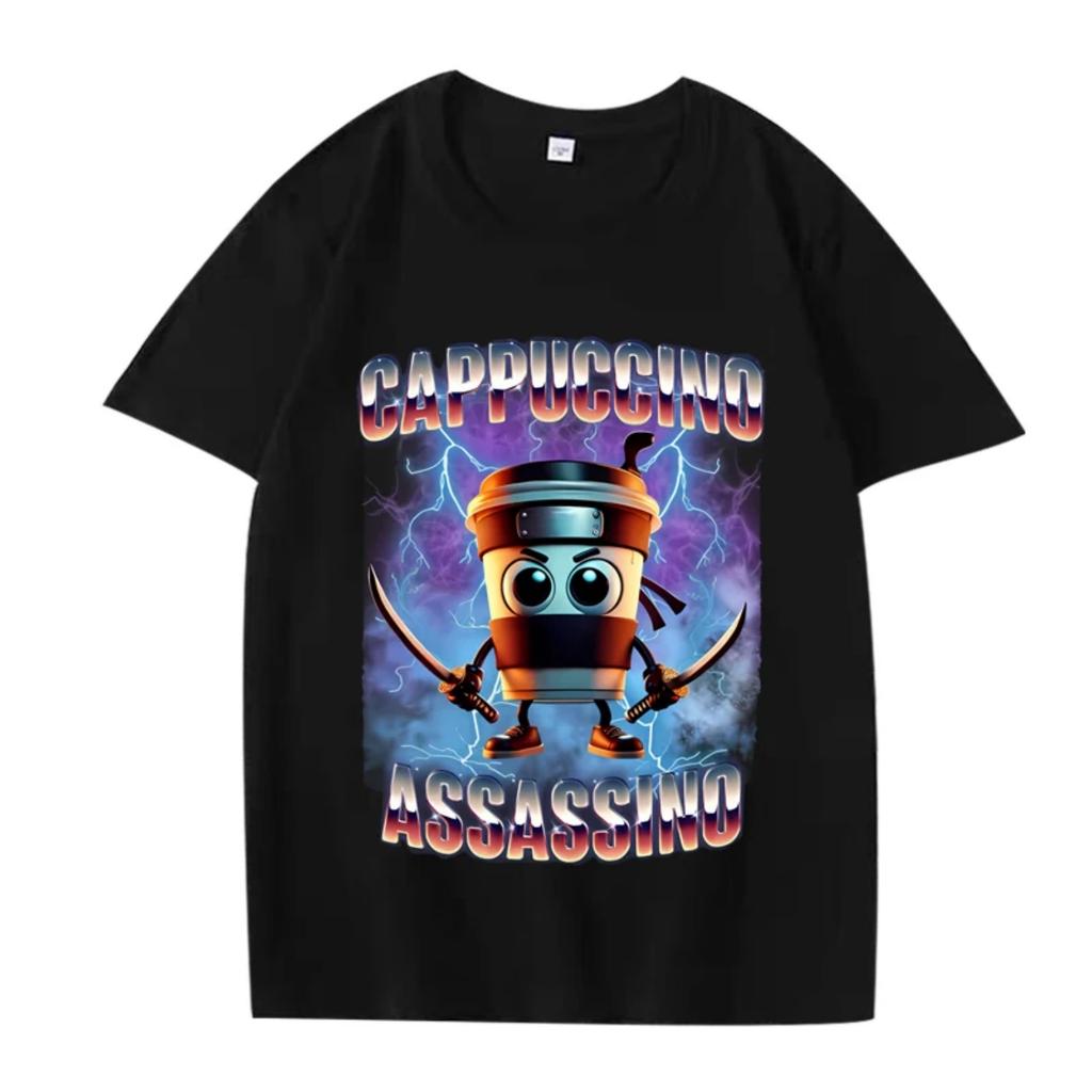 Italian Brainrot Cappuccino Assassino T Shirt men women Oversized 100% Cotton streetwear short sleeve Summer print Unisex tops