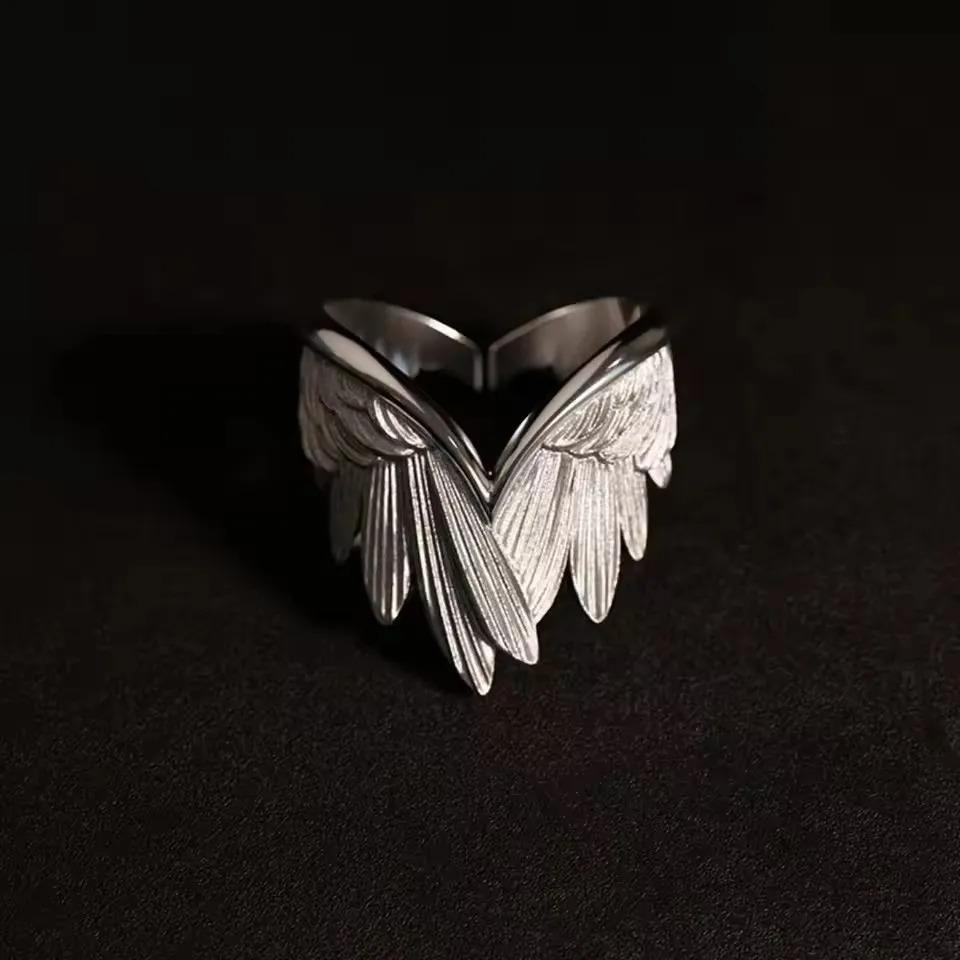 Vintage Angel Wings Ring for Women Men Girls Punk Gothic Adjustable Open Ring Handmade Designer Retro Jewelry Accessories Gift