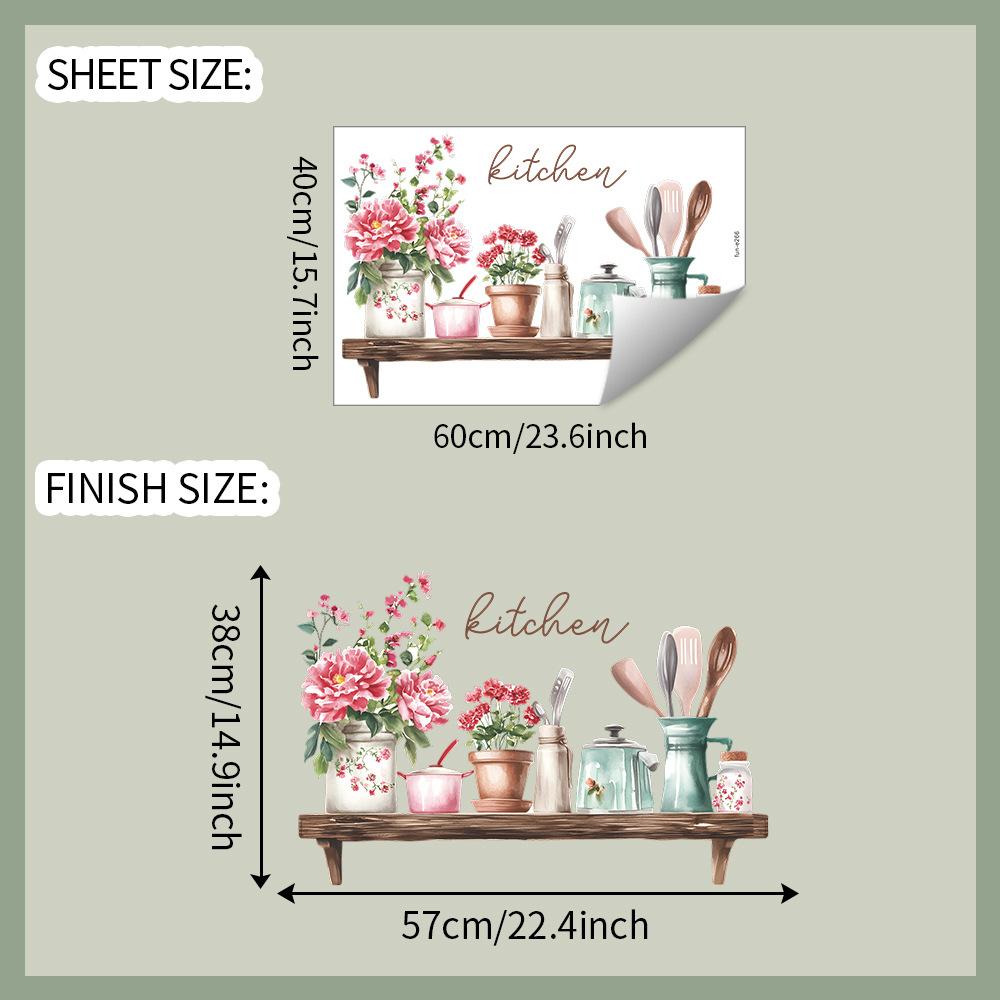 Hand-Painted Spoon and Kitchenware Wall Sticker Rustic Cottage Core Self-Adhesive Decor for Kitchen Dining Room Background