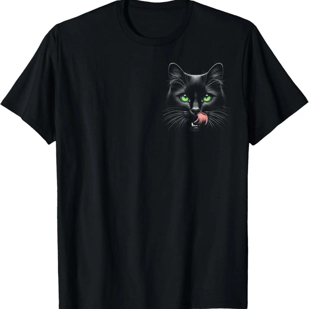 Cool Black Cat with Green Eyes on Chest T-Shirt