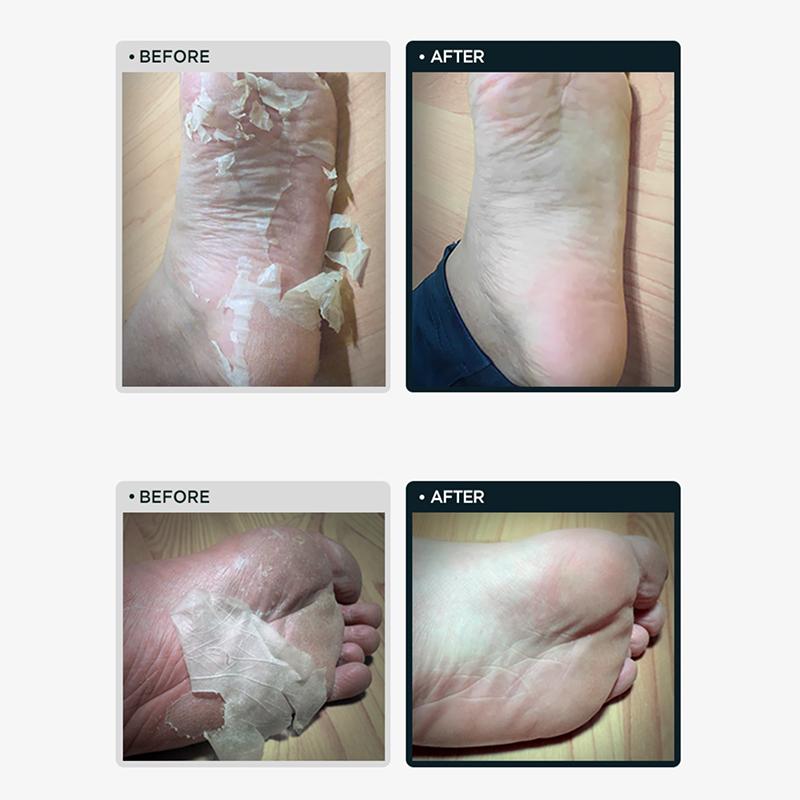 Wash and dry your feet thoroughly. Wear the foot masks and leave on for the recommended time. Remove the masks and rinse feet with water. Dead skin will begin to peel naturally within several days. Do not forcibly remove peeling skin.