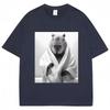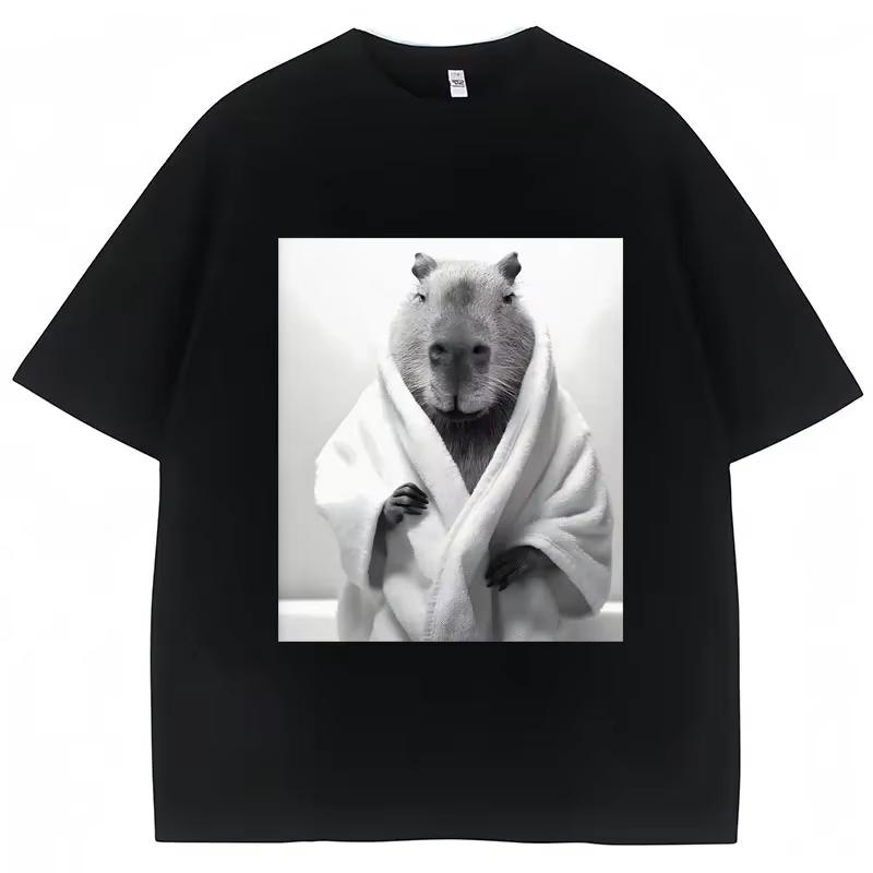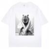 Funny Capybara in Bathrobe Print T Shirts Creativity Popular Summer Short Sleeve Cotton Casual Tees Unisex Streetwear