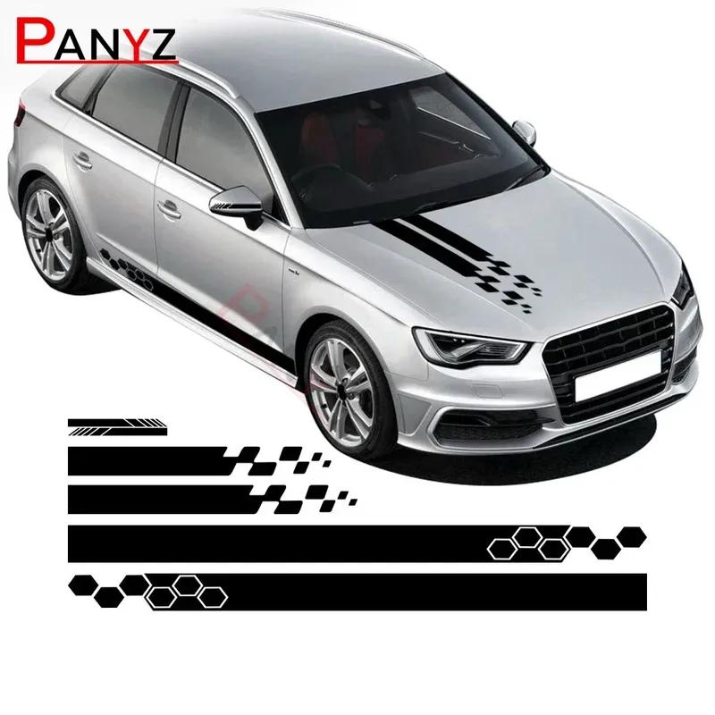 5PCS Universal Car Styling Side Skirts Hood Rearview Mirrors Decorative Auto Body Racing Sports Decals Car DIY Stripe Sticker