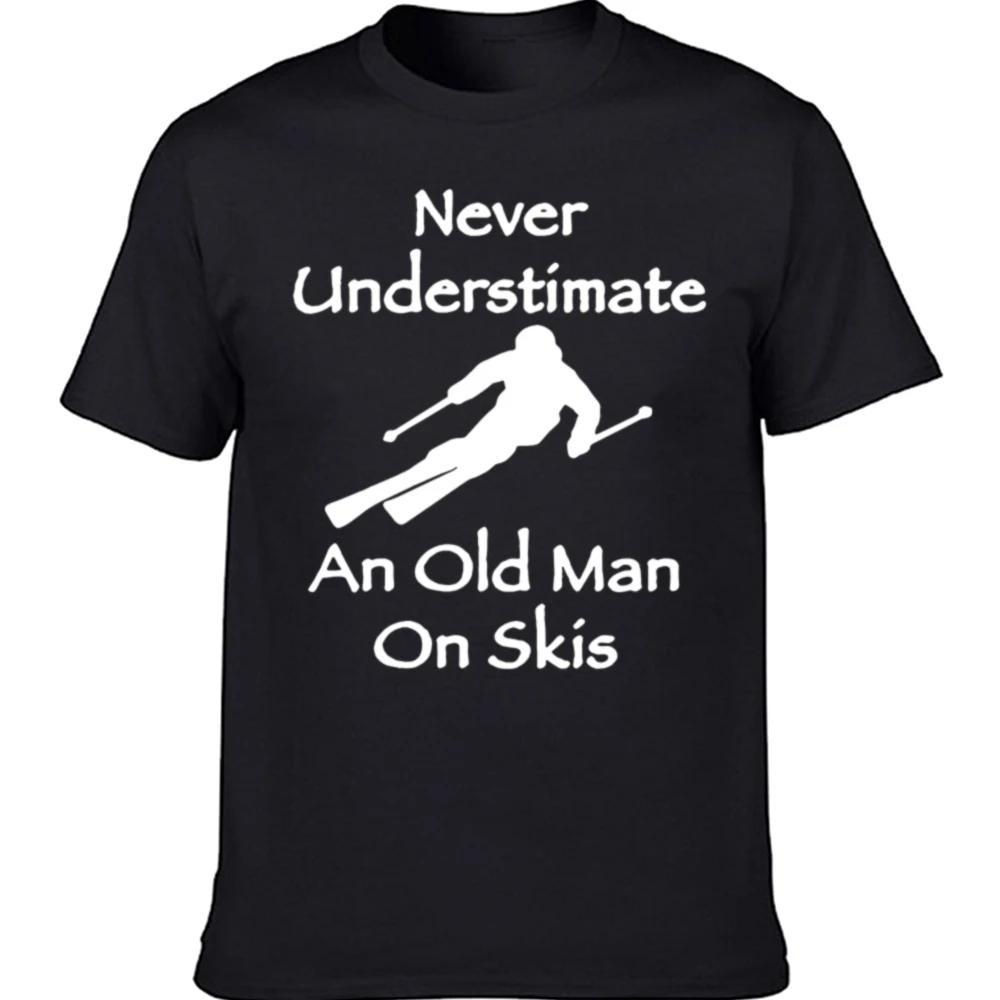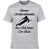 Never Underestimate An Old Man on Skis T Shirt Men Adventure SKI Casual Tshirt Gift for Snowboarder Love Snowboarding Tee