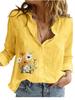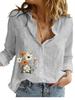 Women Fashion Cotton Linen Blouse Ladies Casual Loose Top Ladies Print Long Sleeve Shirt