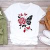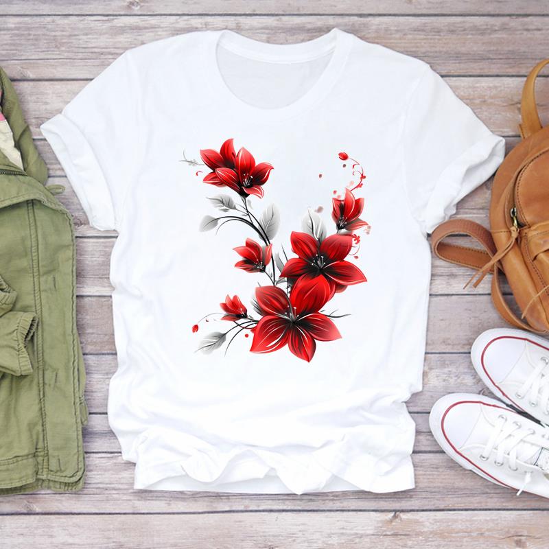 (Asian Size) style flower T Shirt Lady Female Top Short Sleeve T-shirts Casual Printed Clothing Women Fashion Graphic Tee
