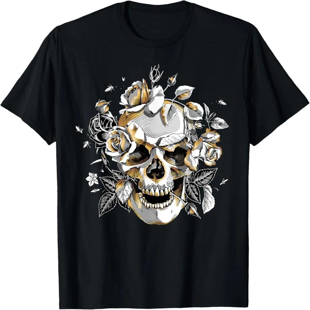 Cool Floral Skull Tee shirts, Halloween Skull T-shirt, Skull T-Shirt