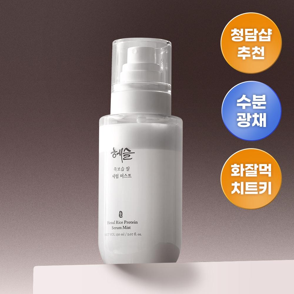 Hesle Deep Moisture Rice Serum Mist 150ml is a mist suitable for all skin types, a common skincare product with FDA-certified wrinkle improvement and hydration functionality. It contains rice protein to provide deep hydration and healthy radiance from within the skin. When shaken before use, it disperses smoothly without clumping, making the skin feel comfortable with a single spray. There is absolutely no stickiness, allowing for burden-free use even before morning makeup.