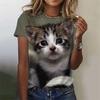 Women's T Shirts Funny 3D Kawaii Cat Print T-Shirts Fashion O-neck Short Sleeve Top Female Y2k Clothing Cute Clothes