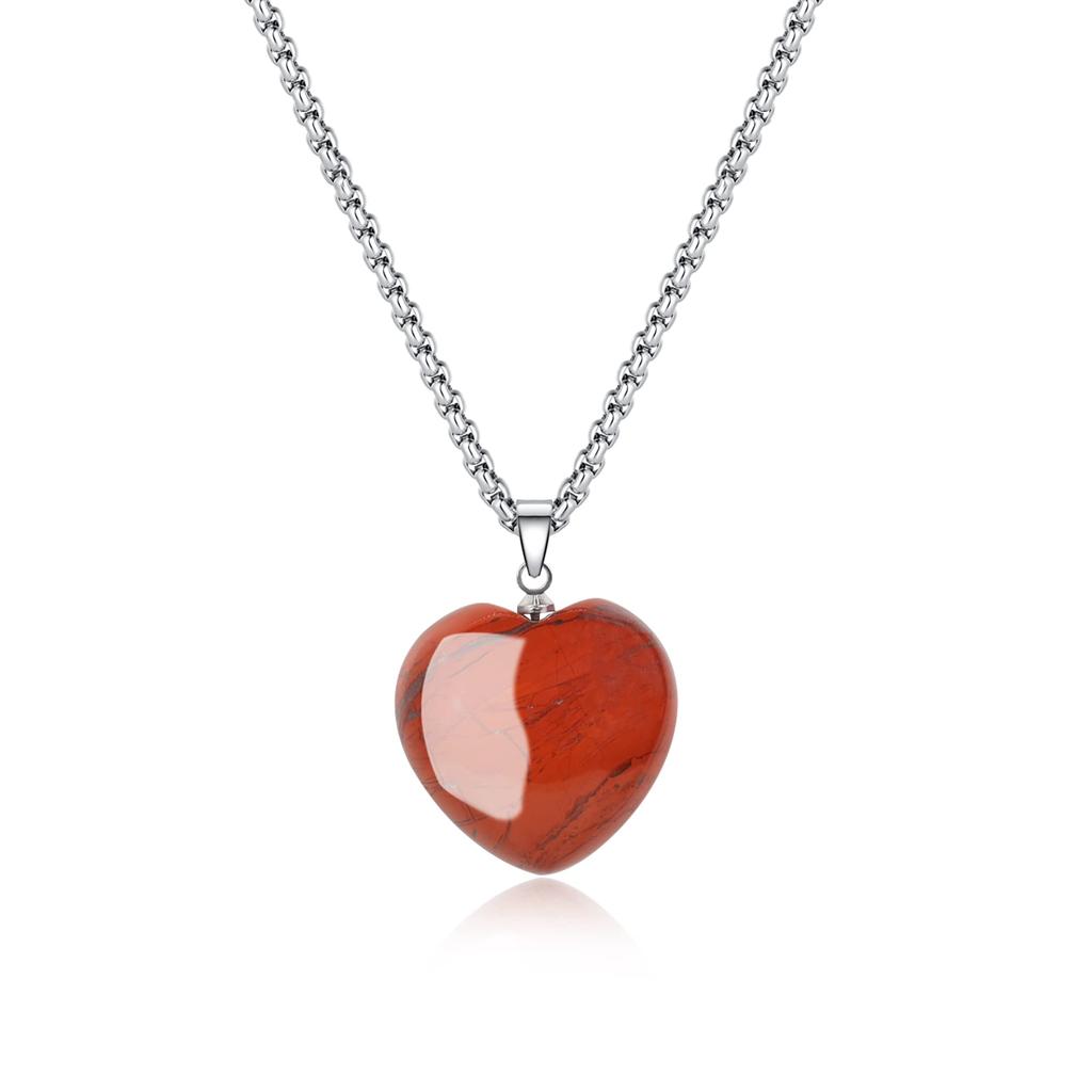This cute heart necklace is made with red jasper, which has a beautiful passionate red color, and a stainless steel Venetian chain.