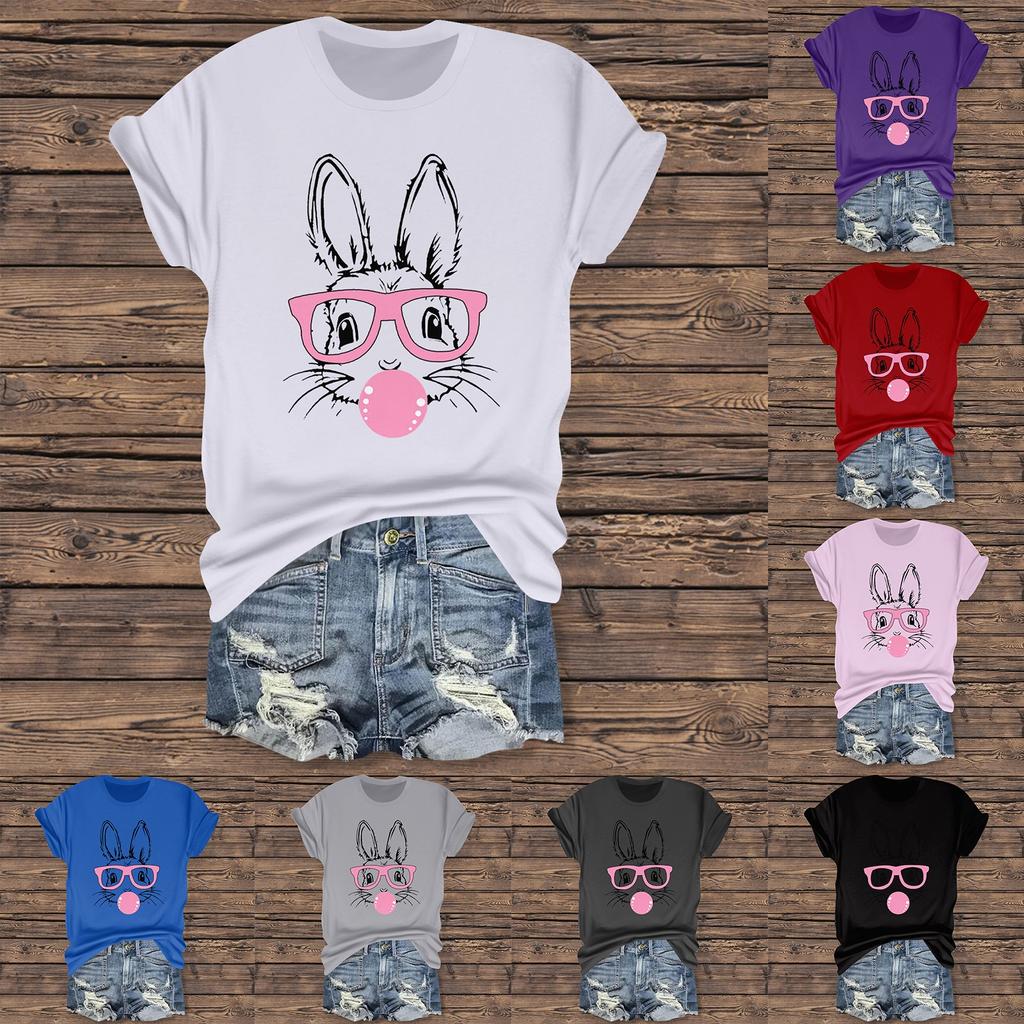 Women's Casual Easter Printed T-Shirt Round Neck Pullover Short Sleeve Top