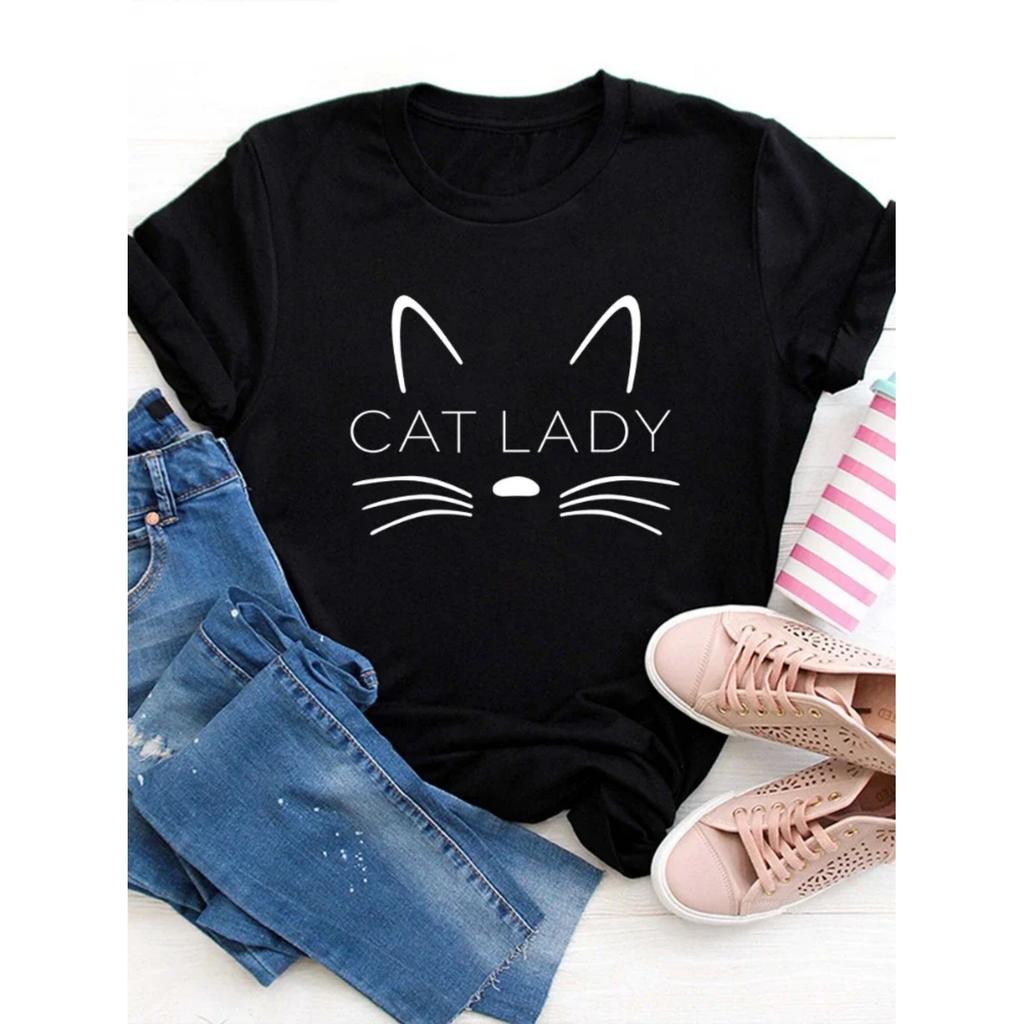 Cute Cat Face Lady Print Women T Shirt Short Sleeve O Neck Loose Women Tshirt Ladies Tee Shirt Tops Camisetas Mujer
