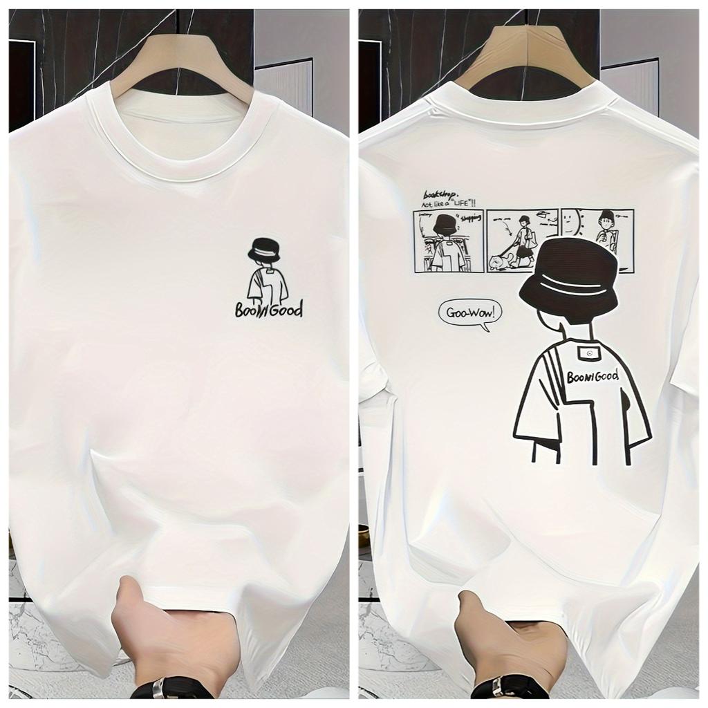 Mens Heavyweight Pure Cotton Tshirt with High Street Pattern Printed Round Neck Short Sleeved Casual Top Casual Clothing