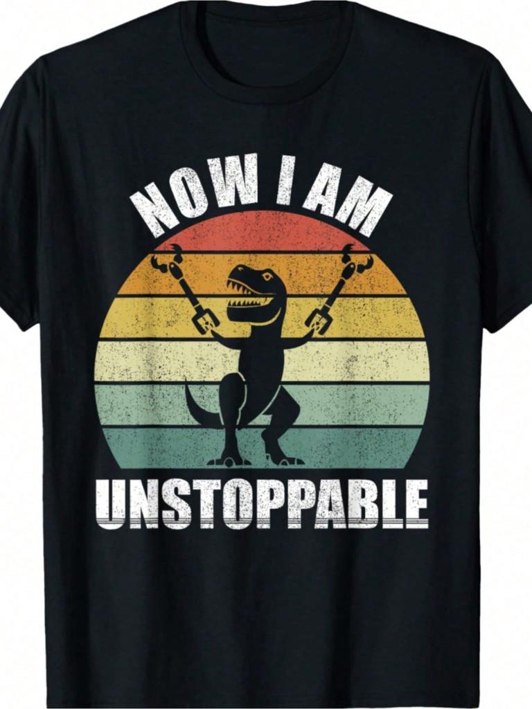 Mens Vintage Now I Am Unstoppable TRex Graphic TShirt Fun Dinosaur Design Black Cotton Tee for All Seasons Casual Round