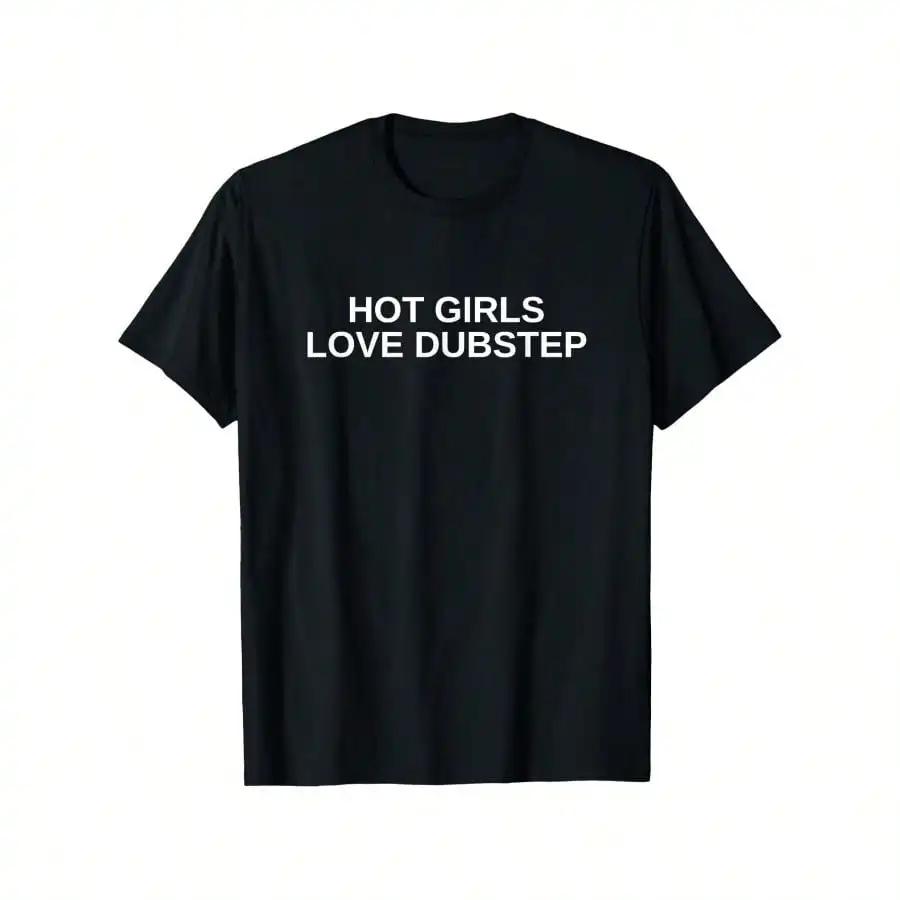 Hot Girls Love Dubstep EDM Rave Funny DJ Techno House Music T Shirt 100 Cotton 180g Heavyweight Black Crewneck Short Sleeve