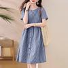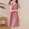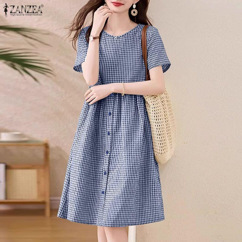 ZANZEA Rochie casual pentru femei, cu gât rotund, mânecă scurtă, imprimeu carouri