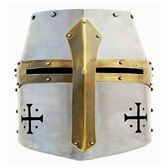 Medieval Crusader's Templar Knight Helmet – 18 Gauge Iron LARP/SCA Silver Helmet Authentic Historical Reenactment Gear