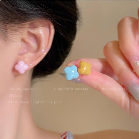 Candy Clover Earrings Women's Summer Sweet Dopamine Stud Earrings Unique Beautiful Cute Earrings