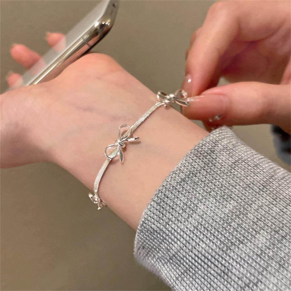 Korean minimalist bow snake bone chain bracelet light luxury niche exquisite high-end cold style jewelry new tide