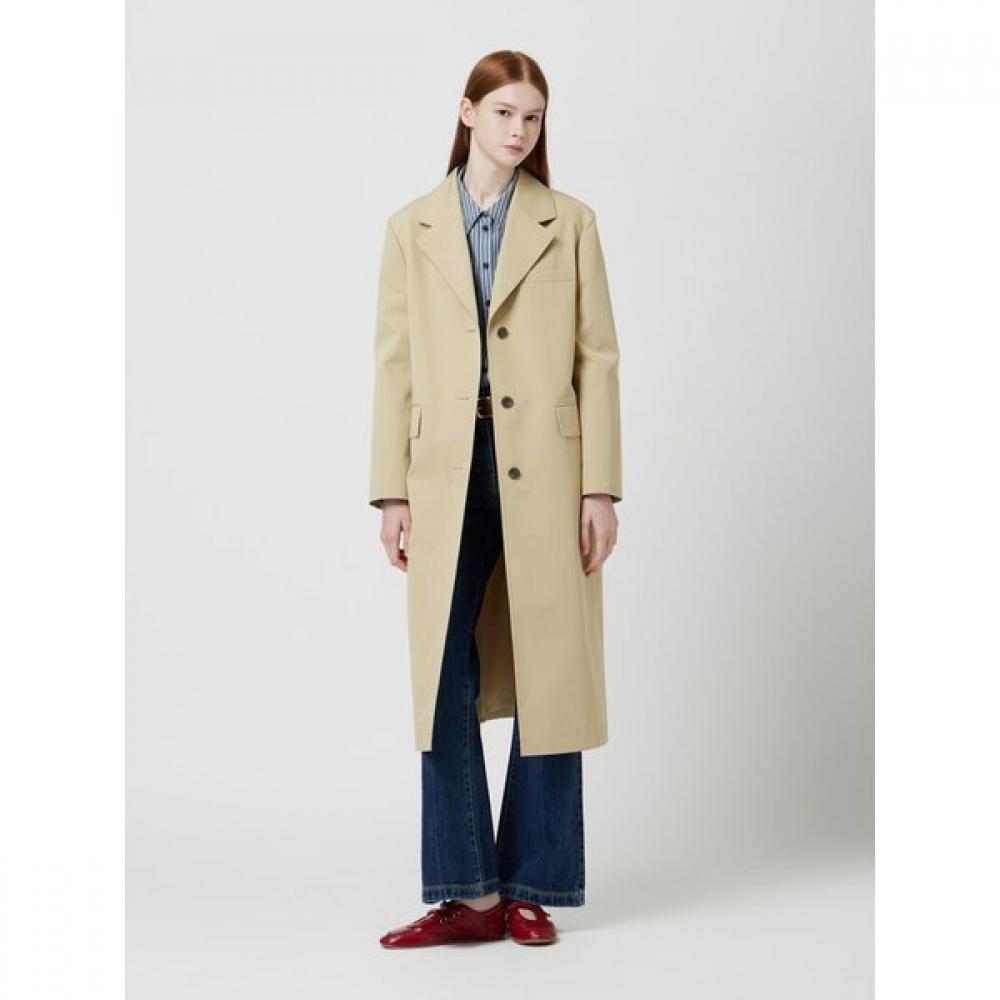 [CC Collect] Tailored Cotton Single Long Jacket (C253MSF003C) features a classic tailored silhouette with a single button closure, designed for women. Its long length enables versatile styling and provides a lightweight wearing comfort. The tailored collar is suitable for both formal and casual occasions, making it adaptable to various styles.