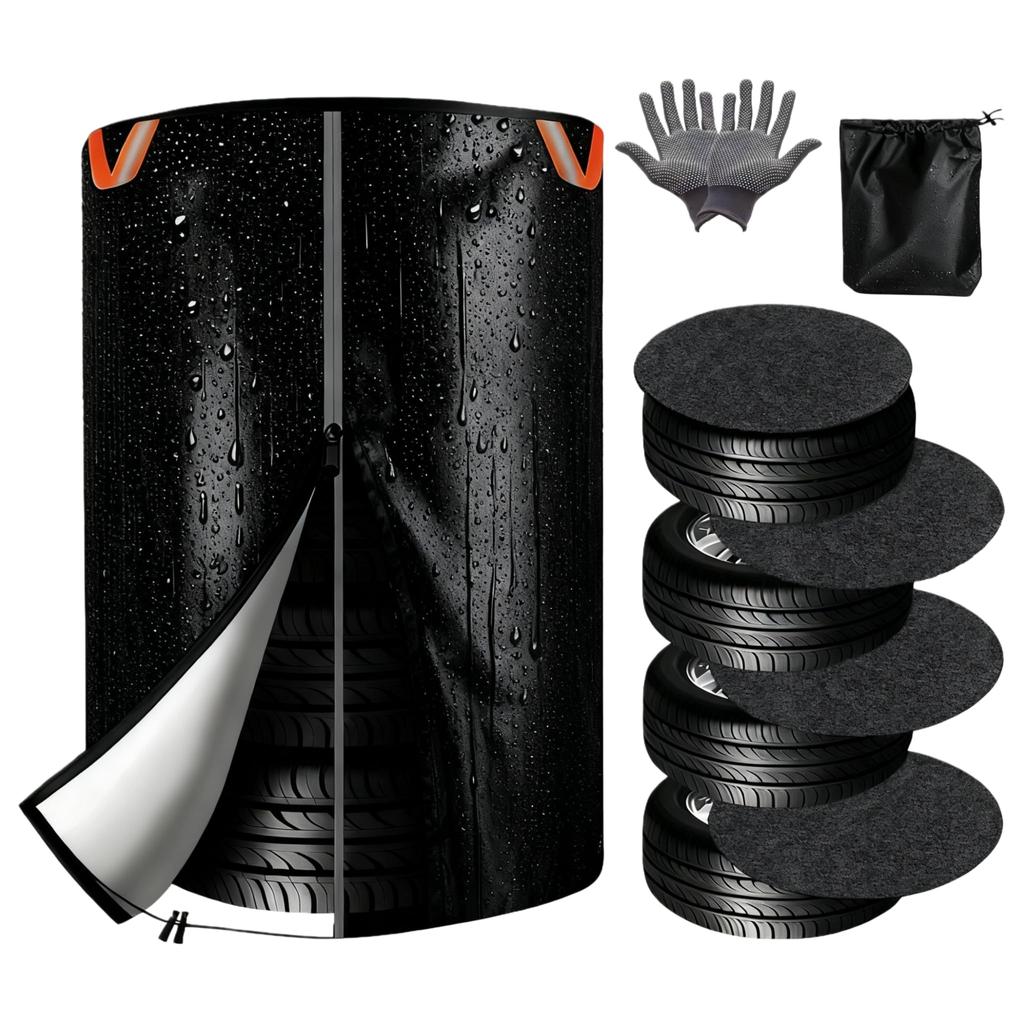 Huse impermeabile groase 420D pentru anvelope de exterior, pentru 4 anvelope, Include geantă de depozitare, Mănuși antiderapante și un set de 4 pad-uri din pâslă. Rezistent la praf, Impermeabil și Durabil. Caracteristici: Benzi reflectorizante, Protecție UV, Protecție UV și Protecție împotriva murdăriei/prafului. Protecție împotriva ploii/zăpezii. Disponibil în mai multe dimensiuni. Compatibil cu o gamă largă de tipuri de vehicule, de la mașini Kei la mașini compacte, mașini standard, minivane și minivane mari. Include o geantă de depozitare, mănuși antiderapante și un set de 4 protecții din pâslă.