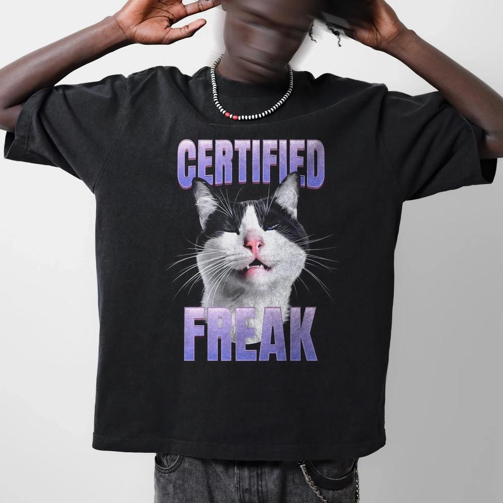 Certified Freak Cat Meme TShirt Funny Graphic Tee Summer Mens and Womens Loose and Breathable Tshirt Top